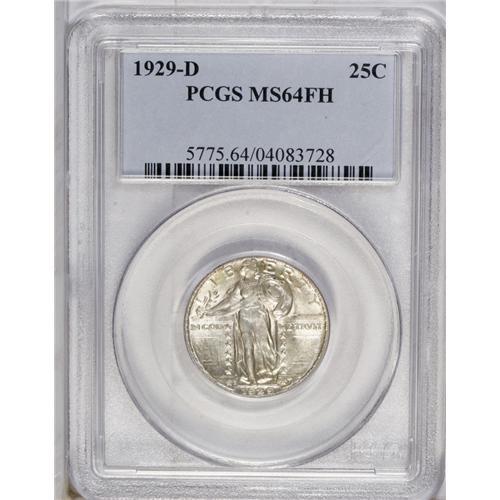 <B>1929-D<25C> MS64 Full Head PCGS.</B></I> Choice with great luster and a bold strike. Only a few small marks limit the grade of this immensely appealing Standing Liberty quarter.