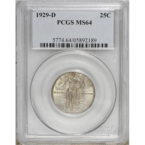 <B>1929-D 25C MS64 PCGS.</B></I> PCGS Population (256/166). NGC Census: (175/117). Mintage: 1,358,000. Numismedia Wsl. Price for NGC/PCGS coin in MS64: $252. (#5774)<BR><BR><B>Coin Engraver:</B> Hermon A. MacNeil<BR><BR><b>Shipping:</b> Coins & Currency (<a target="_blank" href="http://www.heritageauctions.com/common/shipping.php">view shipping information</a>)
