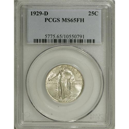 <B>1929-D 25C MS65 Full Head PCGS.</B></I> Lightly dappled gold toning visits this lustrous and beautiful Gem. The date, waist, shield, and head all have above average sharpness. Marks are limited to a few nearly microscopic ticks on the front wing. Population: 35 in 65 Full Head, 11 finer (1/07).<BR><BR><b>Shipping:</b> Coins & Currency (<a target="_blank" href="http://www.heritageauctions.com/common/shipping.php">view shipping information</a>)