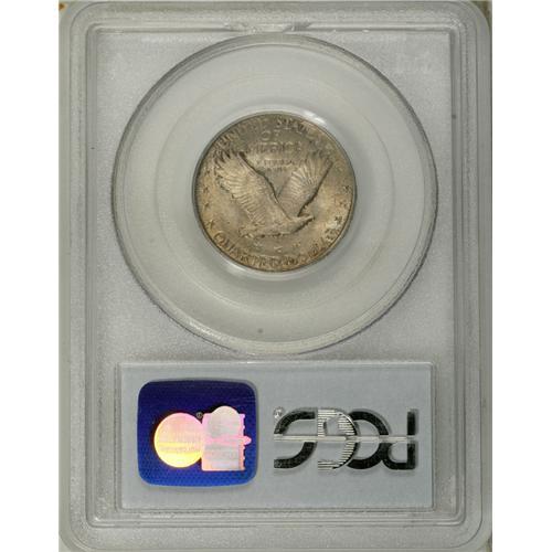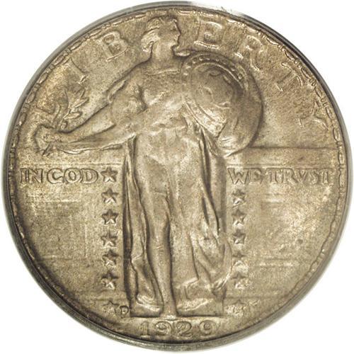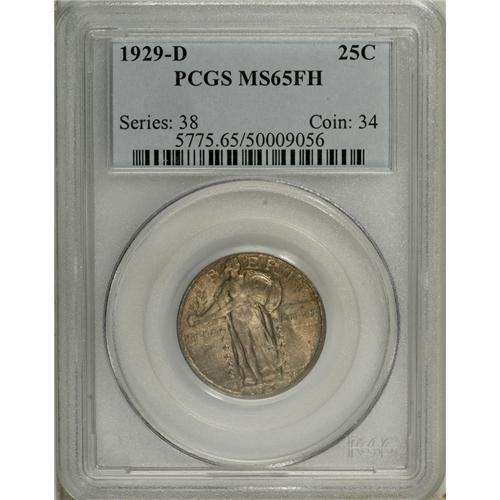 <B>1929-D 25C MS65 Full Head PCGS.</B></I> The 1929-D has emerged as a major strike rarity among later-date issues in the Standing Liberty quarter series. This noteworthy Full Head representative displays a soft, frosted sheen beneath uniform layers of speckled golden toning. A few inconsequential abrasions are noticed on the eagle, the only mentionable marks on either side. Population: 35 in 65, 11 finer (12/06).<BR><BR><b>Shipping:</b> Coin/Currency (<a target="_blank" href="http://www.heritageauctions.com/common/shipping.php">view shipping information</a>)