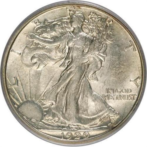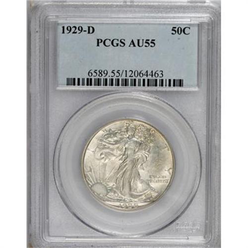 <B>1929-D 50C AU55 PCGS.</B></I> PCGS Population (39/845). NGC Census: (26/519). Mintage: 1,001,200. Numismedia Wsl. Price for NGC/PCGS coin in AU55: $175. (#6589)<BR><BR><B>Coin Engraver:</B> Adolph A. Weinman<BR><BR><b>Shipping:</b> Coins & Currency (<a target="_blank" href="http://www.heritageauctions.com/common/shipping.php">view shipping information</a>)
