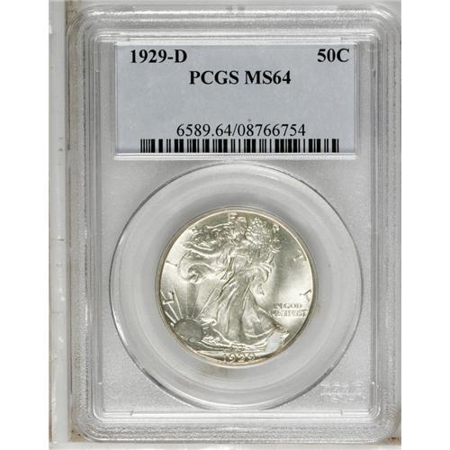 <B>1929-D<50C> MS64 PCGS.</B></I> Choice and lustrous with a slightly better strike than average. The surfaces are mostly untoned and display small marks that account for the grade.