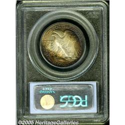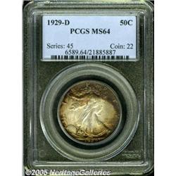 <B>1929-D 50C MS64 PCGS.</B></I> Deep maroon and gold-brown color occupy the borders of this relatively well preserved D-mint Walker.