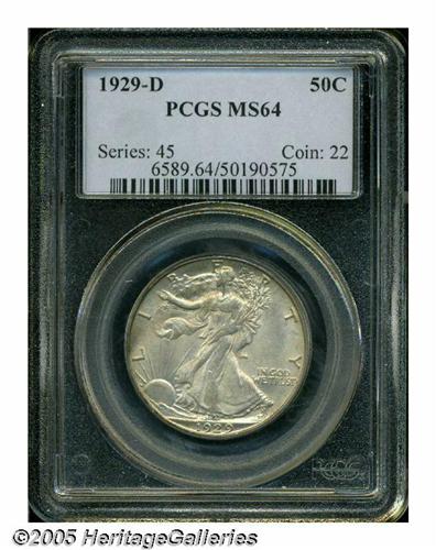 <B>1929-D<50C> MS64 PCGS.</B></I> Mint State examples of the Walking Liberty Half Dollars struck prior to 1934 are, without exception, quite elusive. This example has medium silver-gray toning over satiny luster. Well defined although not quite full.