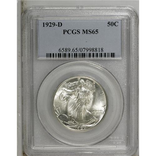<B>1929-D 50C MS65 PCGS.</B></I> Generally very well struck, with excellent detail on Liberty's thumb, and the only noticeable weakness located on the eagle's right (facing) leg feathers. Untoned with shimmering surfaces that are free of significant marks. An area of curious waviness is observed in the lower left obverse field.<BR><BR><b>Shipping:</b> Coin/Currency (<a target="_blank" href="http://www.heritageauctions.com/common/shipping.php">view shipping information</a>)
