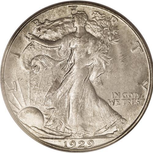 <B>1929-D<50C> MS65 PCGS.</B></I> This light gray-gold specimen, with a tinge of ice-blue, possesses few mentionable abrasions, but it is typically struck through the centers. The bold luster is only a trifle subdued on this accurately graded example.
