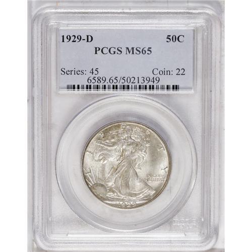 1929-D 50C MS65 PCGS. This light gray-gold specimen, w