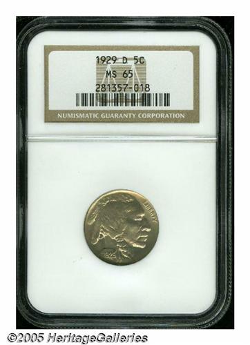 <B>1929-D<5C> MS65 NGC.</B></I> Sharply struck throughout with deep, hazy green and rose toning over each side and lilac accents over the highpoints. The design elements are well impressed, and the lustrous surfaces are devoid of mentionable marks. Population: 53 in 65, 11 finer (4/05).