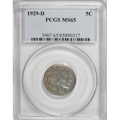 <B>1929-D 5C MS65 PCGS.</B></I> A strikingly toned and immensely lustrous Gem, boldly struck with soft turquoise patina over much of each side and gold and orange toning at the margins. Beautifully preserved.<BR><BR><B>Coin Engraver:</B> James E. Fraser<BR><BR><b>Shipping:</b> Coins & Currency (<a target="_blank" href="http://www.heritageauctions.com/common/shipping.php">view shipping information</a>)