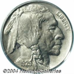 <table><tr><td><table><tr><td>1929-D 5C MS66 PCGS. Soft amber iridescence coats the satiny surfaces of this Gem Buffalo nickel. The strike, while not complete, is well above average for a branch mint issue. While the 1929-D may not be the rarest date in this series, MS66 examples are difficult to locate. Population: 32 in 66, 1 finer (2/04). <BR><BR><B>Important notice:</B> Heritage usually auctions material at the rate of 200-250 lots per hour. On some occasions eBay Live bid software or the Internet may not be able to keep up with the pace of the auction. We recommend placing a realistic absentee bid now as insurance to avoid disappointment. Occasionally the auctioneer may eliminate or reject an eBay Live bid, and the auctioneer may also reopen a lot after the close of the eBay live bidding (usually because we missed an audience bid), and may reject your bid even if it shows you as the winning bidder. By bidding via eBay Live, you agree that Heritage may award the lot to another bidder at its sole discretion under the circumstances described above or any other reasonable circumstances. Since eBay bids are not shown to us until we open the lot on the floor, we treat those bids just like floor bids. In most cases the floor responds before the eBay bid is presented to us, due to Internet lag time, so for consistency we have made it a policy that floor bids are always considered first over tie eBay live bids. Also please note that all Heritage lots purchased through eBay Live carry a 20% Buyer's Premium. Please make sure you read the Terms and Conditions before you bid. <BR><BR><B>IMPORTANT ANNOUNCEMENT ABOUT RESERVES:</B> Heritage now divulges all reserves on its web site 7 days before every auction. If you want to know whether the reserve on this lot has been met, and if not, what the reserve amount is, please visit this lot page on the HeritageCoin.com web site, or email: bid@HeritageGalleries.com </span></font></td></tr></table></td></tr></table>
