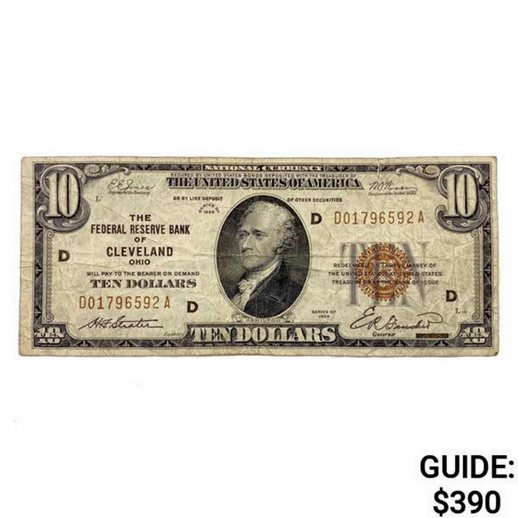 1929 D US Bank of Cleveland, OH $10 Fed Res Note