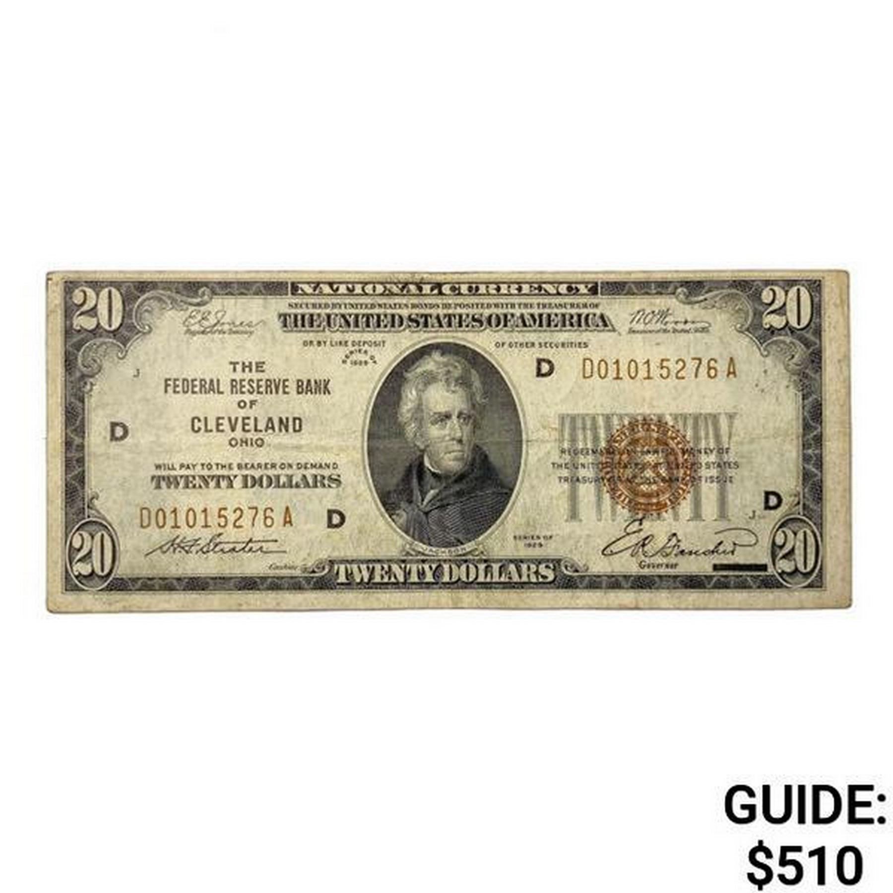1929 D US Cleveland Bank, OH $20 Fed Res Note