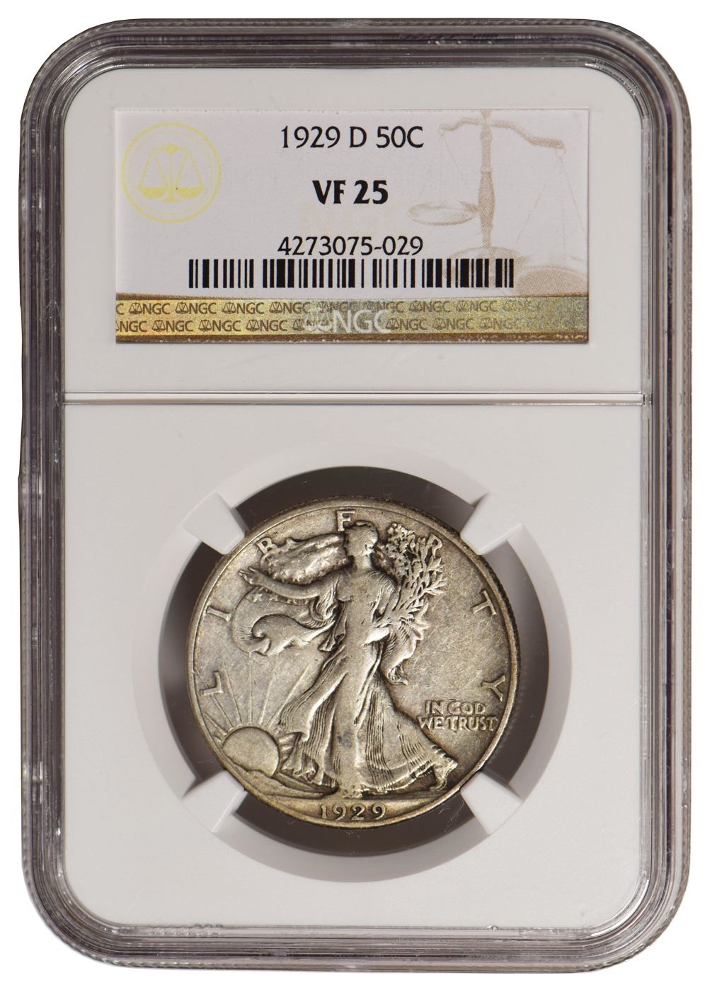 One 1929-D Walking Liberty Half Dollar NGC VF25.