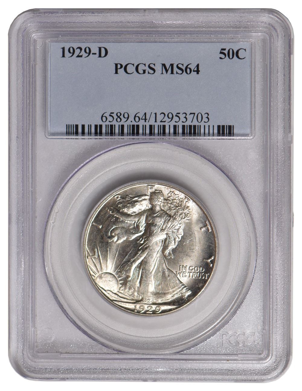 One 1929-D Walking Liberty Half Dollar PCGS MS64.