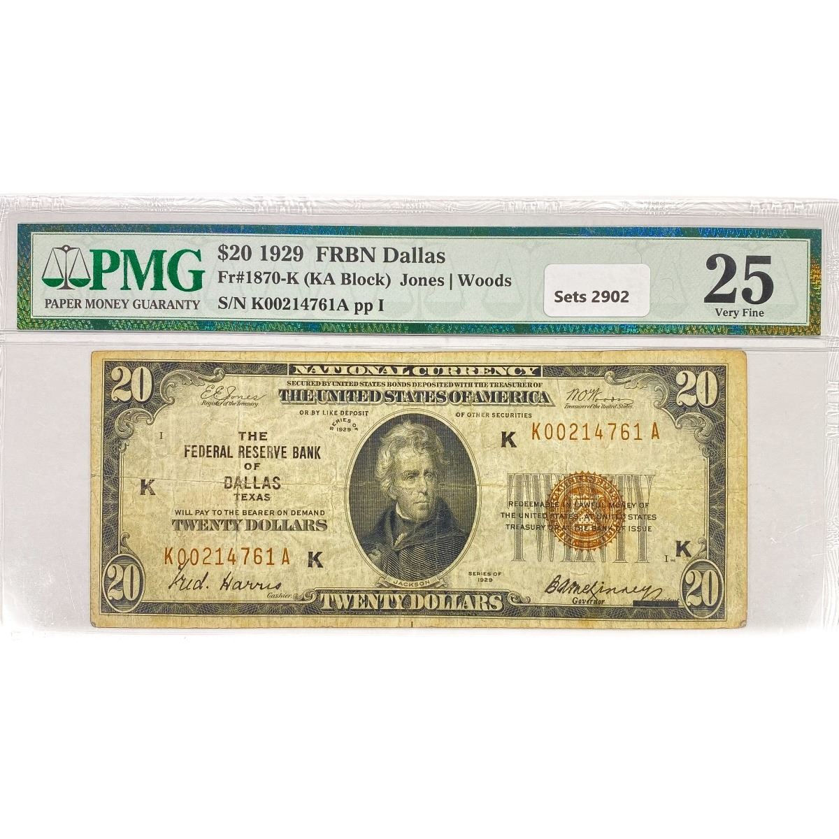 1929 Dallas, TX $20 Legal Tender Note PMG VF 25