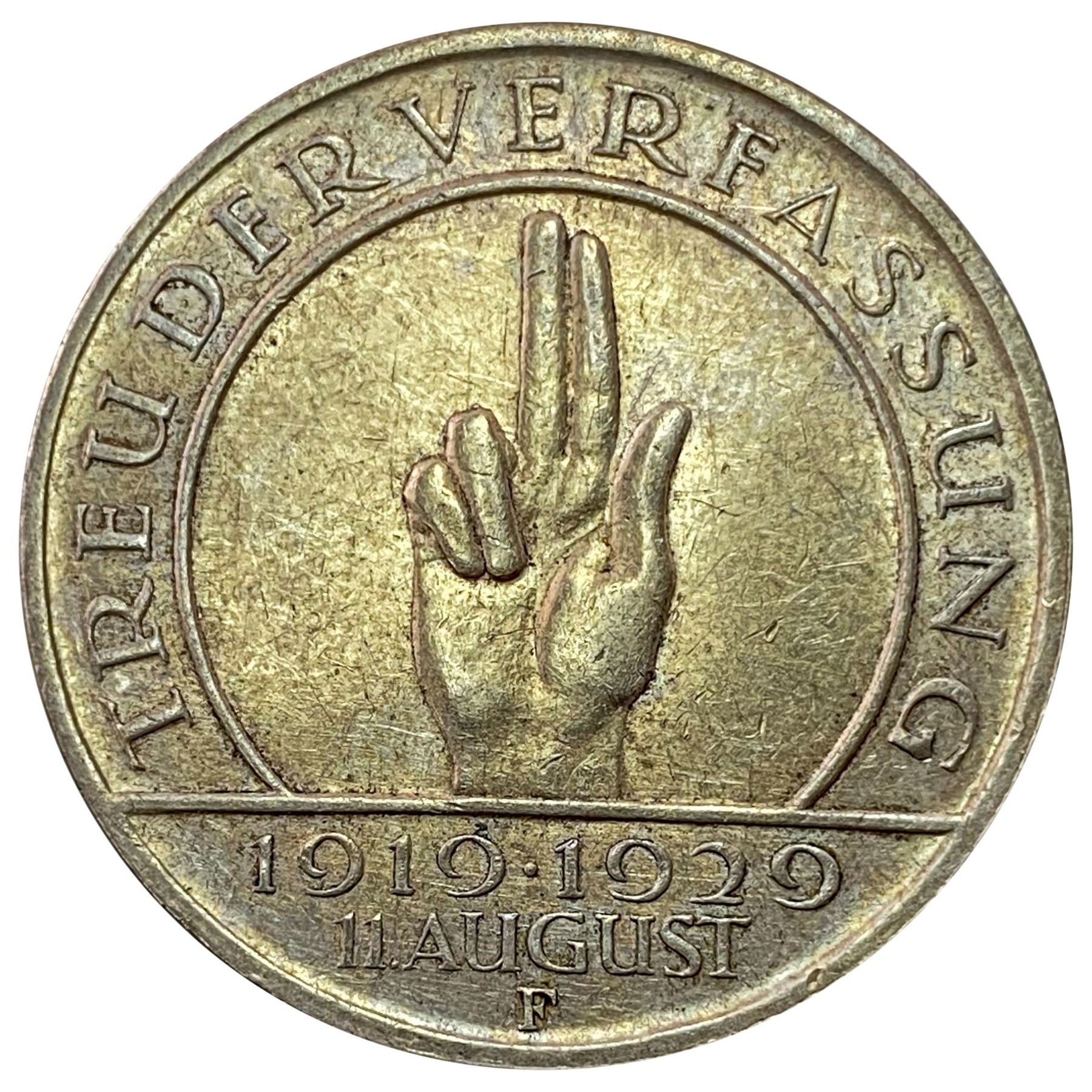 1929-F Germany Silver 3 Reichsmark CHOICE AU