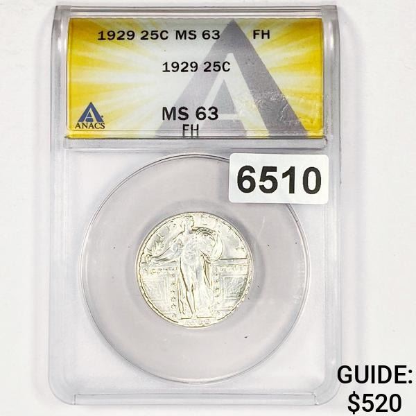 1929 FH Standing Liberty Quarter ANACS - MS63