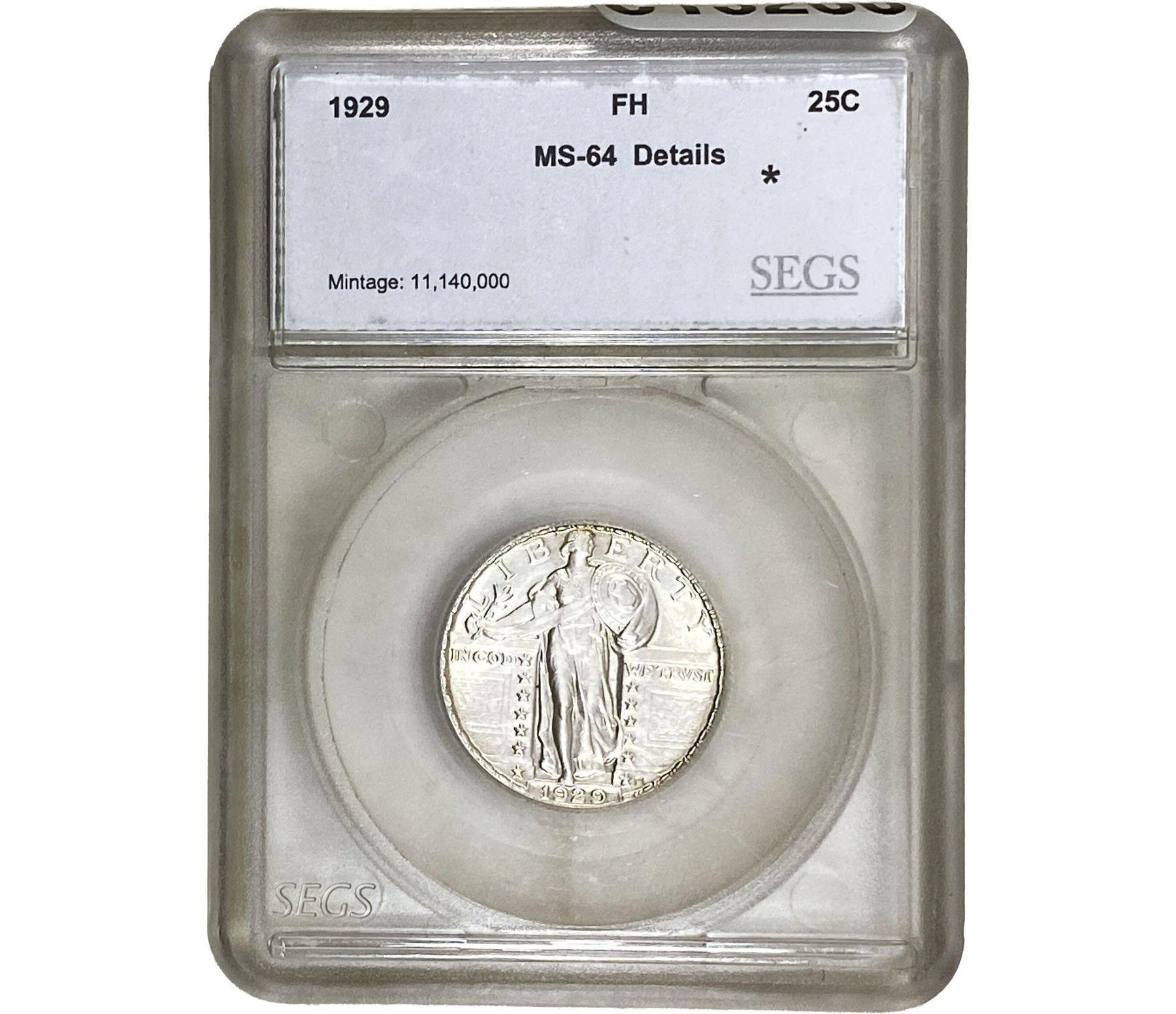 1929 FH Standing Liberty Quarter SEGS MS64 DET