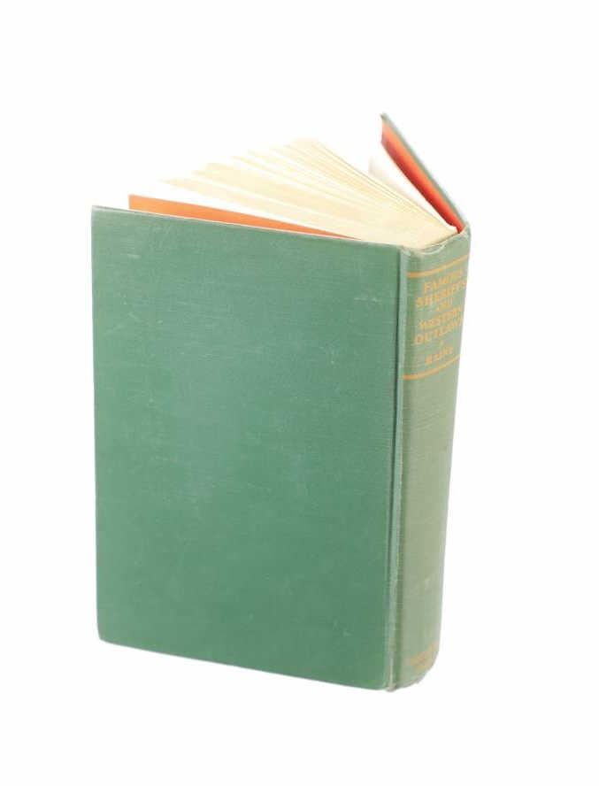 Featured in this lot is this 1929 edition of Famous Sheriffs & Western Outlaws by William MacLeod Raine. The book is a collection of true stories about the most notorious outlaws and sheriffs of the American West during the late 19th and early 20th centuries. The book is divided into two parts: the first part focuses on the sheriffs who were responsible for maintaining law and order in the Wild West, while the second part details the lives of the most infamous outlaws who terrorized the region. The sheriffs section includes stories about legendary lawmen such as Wyatt Earp, Bat Masterson, and Wild Bill Hickok, who were known for their bravery and quick thinking in dangerous situations. The outlaws section includes tales of notorious bandits like Jesse James, Billy the Kid, and Butch Cassidy, who became infamous for their daring robberies and escapes from the law. Throughout the book, Raine provides vivid descriptions of the Wild West, including its landscape, culture, and people. He also delves into the political and social factors that contributed to the rise of outlaw culture in the American West. The green cloth bound illustrated hardcover is in nice condition, scuffing noted to edges. Intact deckled bottom and fore edge pages exhibit age tanning. Measures 5.5"W x 8.25"L x 1.25"D.