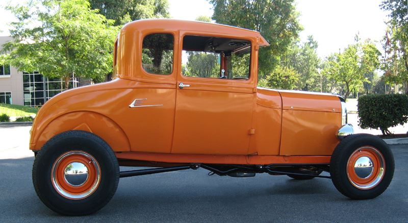 1929 Ford Highboy Coupe Hotrod! This Hotrod has been customized and equipped with the following: A Real Steel Body that has been Un-Chopped & Un-Channeled, custom Vibrant Tangerine Paint with Gray Tweed Interior, Rear Chrome Coil Over Shocks, Blue Dot Tail Lights, a Drop Axel with Chrome Shorty Shocks, Big Blazer V6 Engine with a chrome Dress up kit, TH350 Auto Transmission with a LOKAR Floor Shifter, chrome radiator shell, Dual Exhaust with Glass Packs, an overhead console stereo, tinted glass, Grant Steering Wheel, Color Matched Steel Vintage Rims with Big & Little Tires, Chrome Headlights with Internal Turn Signals, Dolphin Gauges, Door Locks, Roll up windows,, seat belts and a chrome spreader bar, New Steering Box, Power Brake Booster, Aoogah Horn, and a New 1000 Cranking Amp Battery!! This Hot Rod is sure to get people's attention and smiles with its custom Tangerine Paint! This is a Clean, dependable, fun little Hot Rod to Drive!