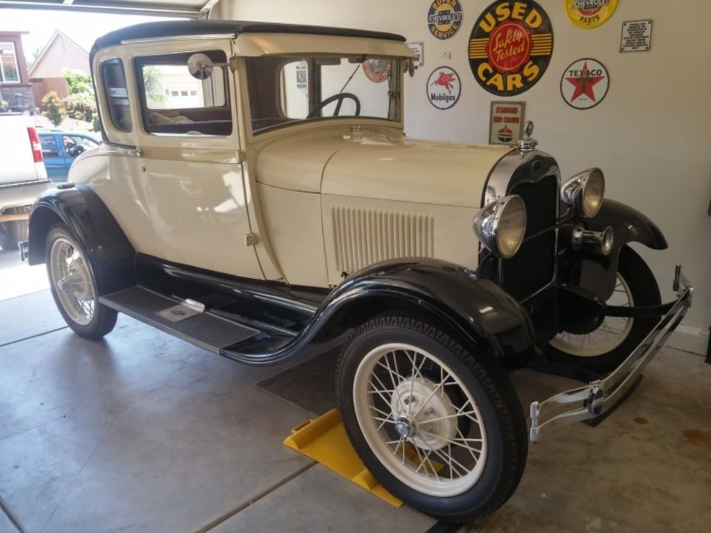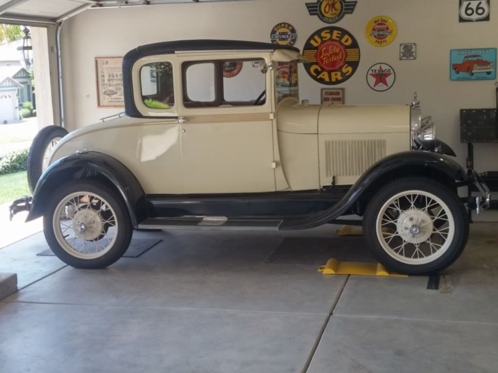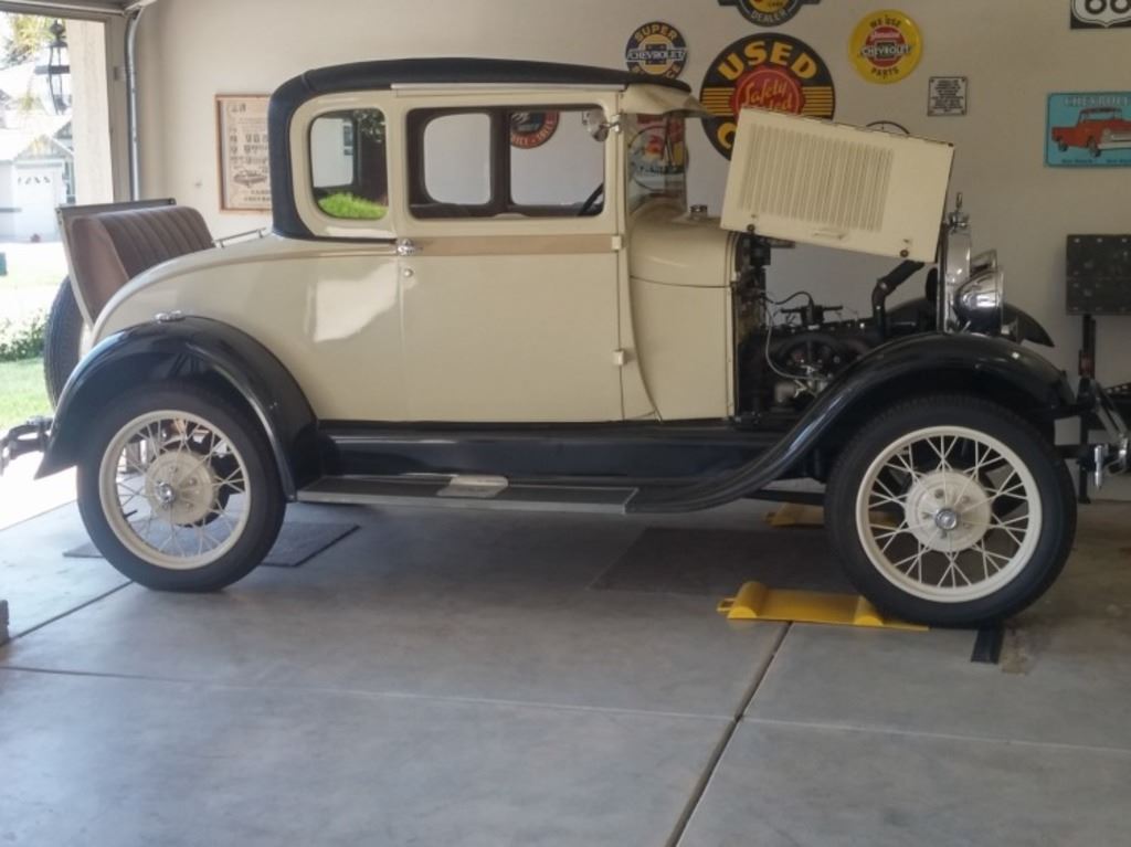 1929 Ford Model A Coupe. . Special with Rumble Seat.. Older restoration. Stock condition. New vinyl top. Powder coated wire wheels.. New - Carb. Distributor. Tires. Air Cleaner. Water-pump. Gas gauge.. Rebuilt - Motor. Starter. Radiator. Generator. Ahouga Horn.. Run and Drives Good !!!!!!