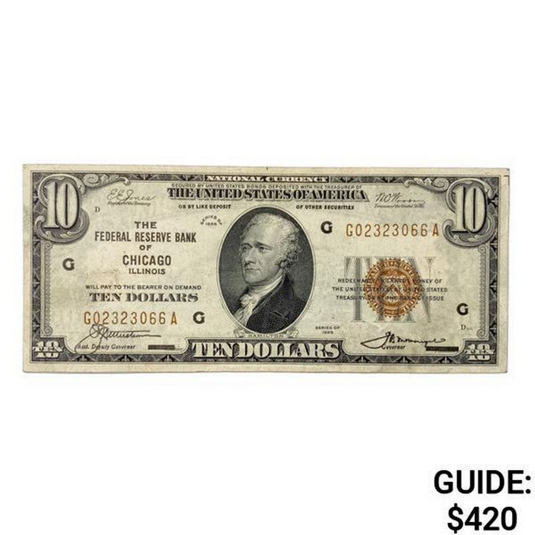 1929 G US Chicago Bank, IL $10 Fed Res Note