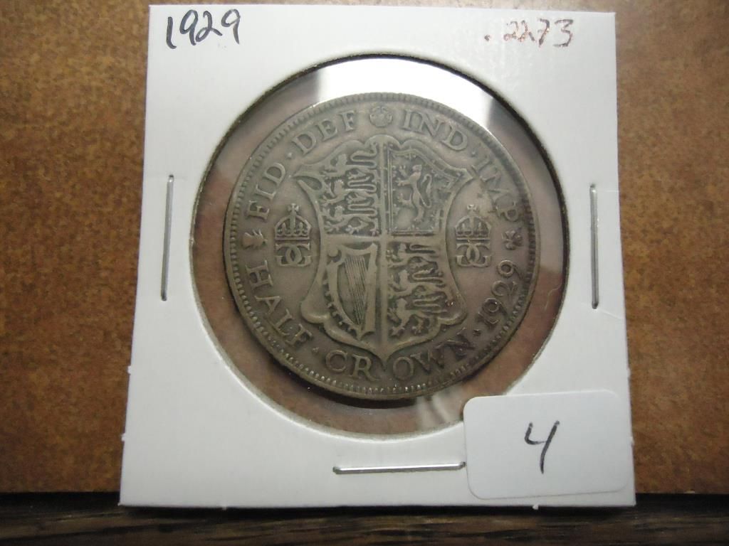 1929 GREAT BRITAIN SILVER HALF CROWN .2273 OZ.ASW