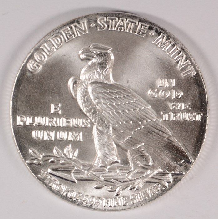 1929 INCUSE INDIAN REPLICA, ONE OUNCE .999 SILVER ROUND