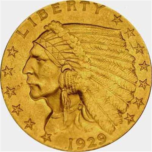 1929 Indian Head US $2.5 Pacific Coin Grading Service Certified Gold Coin MS62