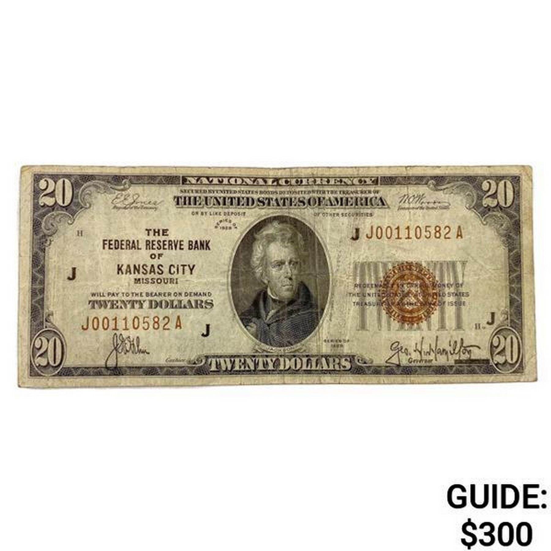 1929 J US Kansas City Bank, MO $20 Fed Res Note