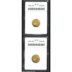 <TABLE cellSpacing=0 cellPadding=0 width="100%" bgColor=#000000 border=0><TBODY><TR><TD width="100%"><TABLE cellSpacing=1 cellPadding=3 width="100%" border=0><TBODY><TR><TD width="100%" bgColor=#79735c><FONT face=arial color=#ffffff size=3><B>Description</B> </FONT></TD></TR><TR><TD width="100%" bgColor=#ffffff><FONT face=arial size=2><B>1928 $2 1/2 MS60 ANACS,</B></I> a meticulously strike and lustrous type coin whose only distraction is a vertical handling mark in the left reverse field; and an <B>1929 MS60 ANACS,</B></I> a reasonable strike, hints of olive-gold color, a faint curved pinscratch between 9 and 11 o'clock on the reverse. (2 Coins) </FONT></TD></TR></TBODY></TABLE></TD></TR></TBODY></TABLE><BR><A name=PricesRealized></A><TABLE cellSpacing=0 cellPadding=0 width="100%" bgColor=#000000 border=0><TBODY><TR><TD width="100%"><TABLE cellSpacing=1 cellPadding=3 width="100%" border=0><TBODY><TR><TD width="100%" bgColor=#79735c><A name=PR><FONT face=arial color=#ffffff size=3><B>Previous Prices from Heritage Auctions</B> </FONT></A></TD></TR><TR><TD bgColor=#f6f6ed><TABLE cellSpacing=0 cellPadding=0 width="100%" border=1><TBODY><TR><TD align=middle width="33%"><B>Date</B></TD><TD align=middle width="33%"><B>Service</B></TD><TD align=middle width="33%"><B>Price</B></TD></TR><TR bgColor=whitesmoke><TD width="33%"><B>05/22/1993</B></TD><TD width="33%">NGC</TD><TD width="33%">$209.00</TD></TR><TR bgColor=whitesmoke><TD width="33%"><B>03/20/2001</B></TD><TD width="33%">ANACS</TD><TD width="33%">$190.00</TD></TR></TBODY></TABLE></TD></TR><TR><TD bgColor=#ffffff><FONT face=arial size=1 ?>PLEASE NOTE: All prices realized reflect the final hammer price PLUS the buyer's premium in auctions that charge a buyer's premium. Each item has a notation at the top of the listing indicating whether that lot included a buyer's premium. Example: A item that sells with a final hammer price of $100 and a 20% buyer's premium will display with a price realized of $120. All information listed is intended to be as accurate as possible, but errors are possible. Please use this guide carefully and inform us of any inaccuracies. </FONT></TD></TR></TBODY></TABLE></TD></TR></TBODY></TABLE><BR><TABLE cellSpacing=0 cellPadding=0 width="100%" bgColor=#000000 border=0><TBODY><TR><TD width="100%"><TABLE cellSpacing=1 cellPadding=3 width="100%" border=0><TBODY><TR><TD width="100%" bgColor=#79735c colSpan=6><FONT face=arial color=#ffffff size=3><B>Price Guide*</B> </FONT></TD></TR><TR bgColor=#f6f6ed><TD align=middle><B>Grade</B> </TD><TD align=middle><B>Coin World<BR>(Trends)</B> </TD><TD align=middle><B>Numismedia<BR>Retail</B> </TD><TD align=middle><B>Numismedia<BR>Wholesale</B> </TD><TD align=middle><B>Coin<BR>Universe</B> </TD><TD align=middle><B>Heritage<BR>Value Index</B> </TD></TR><TR><TD colSpan=6>No Pricing Data Available</TD></TR><TR bgColor=#ffffff><TD colSpan=6><FONT size=1>*All information listed is intended to be as accurate as possible, but errors are possible. No item may be returned or refused based on this information which is provided as a service to our customers. You should contact each pricing source directly to determine the accuracy of this information. </FONT></TD></TR></TBODY></TABLE></TD></TR></TBODY></TABLE><BR><TABLE cellSpacing=0 cellPadding=0 width="100%" bgColor=#000000 border=0><TBODY><TR><TD width="100%"><TABLE cellSpacing=1 cellPadding=3 width="100%" border=0><TBODY><TR><TD width="100%" bgColor=#79735c><FONT face=arial color=#ffffff size=3><B>Population Guide</B> </FONT></TD></TR><TR bgColor=#ffffff><TD align=middle><!-- Begin Output of Population Grid--><TABLE cellSpacing=0 cellPadding=0 width="100%" border=0><TBODY><TR><TD vAlign=center><TABLE cellSpacing=0 width="100%" border=1 cellsadding="3"><TBODY><TR><TD vAlign=center><TABLE cellSpacing=0 cellPadding=3 width="100%" border=1><TBODY><TR><TD vAlign=center align=middle bgColor=#f0f1e8 colSpan=2 <CENTER><FONT face=Arial size=2><B>PCGS Pop </B></FONT><CENTER></CENTER></TD><TD vAlign=center align=middle bgColor=#f0f1e8 colSpan=2><CENTER><FONT face=Arial size=2><B>NGC Pop</B></CENTER></FONT></TD></TR><TR><TD vAlign=center><FONT face=Arial size=2>(60)</FONT> </TD><TD vAlign=center align=right><FONT face=Arial size=2>229</FONT> </TD><TD vAlign=center><FONT face=Arial size=2>(60)</FONT> </TD><TD vAlign=center align=right><FONT face=Arial size=2>116</FONT> </TD></TR><TR><TD vAlign=center><FONT face=Arial size=2>(>60)</FONT> </TD><TD vAlign=center align=right><FONT face=Arial size=2>5379</FONT> </TD><TD vAlign=center><FONT face=Arial size=2>(>60)</FONT> </TD><TD vAlign=center align=right><FONT face=Arial size=2>6445</FONT> </TD></TR></TBODY></TABLE></TD></TR></TBODY></TABLE></TD></TR></TBODY></TABLE><!-- End Output of Population Grid--> 2 Coins Important notice: Heritage usually auctions material at the rate of 200-250 lots per hour. On some occasions eBay Live bid software or the Internet may not be able to keep up with the pace of the auction. We recommend placing a realistic absentee bid now as insurance to avoid disappointment. Occasionally the auctioneer may eliminate or reject an eBay Live bid, and the auctioneer may also reopen a lot after the close of the eBay live bidding (usually because we missed an audience bid), and may reject your bid even if it shows you as the winning bidder. By bidding via eBay Live, you agree that Heritage may award the lot to another bidder at its sole discretion under the circumstances described above or any other reasonable circumstances. Also please note that all Heritage lots purchased through eBay Live carry a 20% Buyer's Premium. Please make sure you read the Terms and Conditions before you bid.</TD></TR></TBODY></TABLE></TD></TR></TBODY></TABLE>