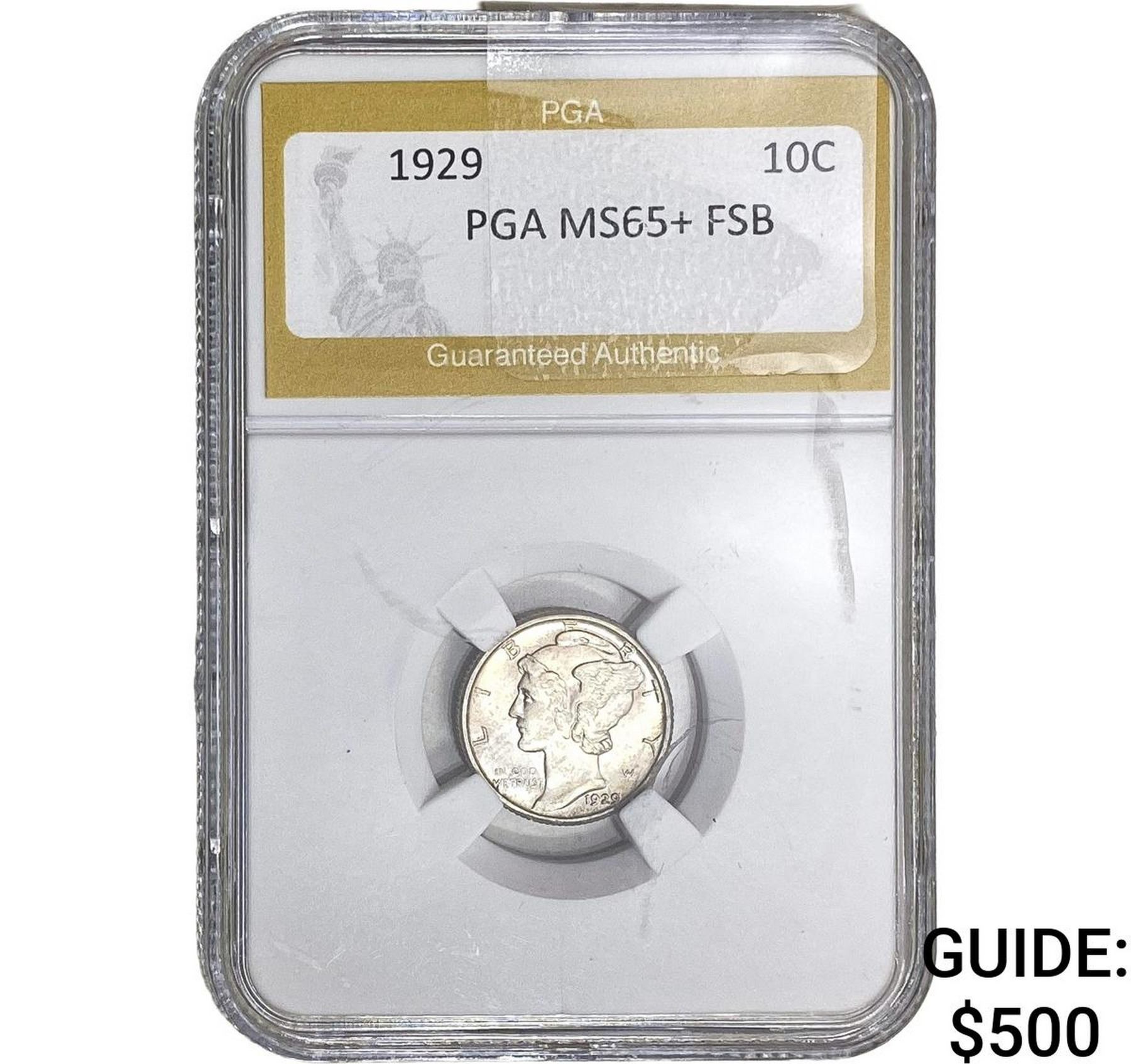 1929 Mercury Silver Dime PGA MS65+ FSB