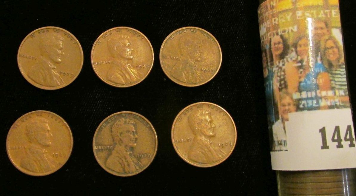 1929 P Solid-date U.S. Lincoln Cent Roll. Circulated.