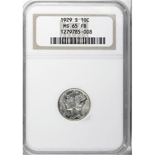 <B>1929-S 10C MS65 Full Bands NGC.</B></I> NGC Census: (35/33). PCGS Population (127/124). Mintage: 4,730,000. Numismedia Wsl. Price for NGC/PCGS coin in MS65: $480. (#4977)<BR><BR><B>Coin Engraver:</B> Adolph A. Weinman<BR><BR><b>Shipping:</b> Coins & Currency (<a target="_blank" href="http://www.heritageauctions.com/common/shipping.php">view shipping information</a>)