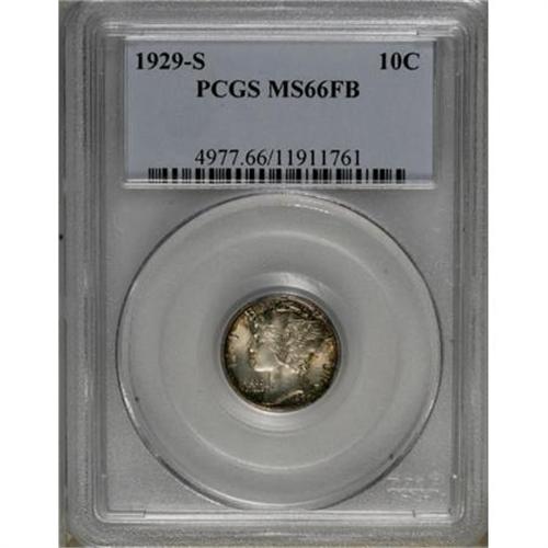 <B>1929-S 10C MS66 Full Bands PCGS.</B></I> PCGS Population (99/25). NGC Census: (21/11). Mintage: 4,730,000. Numismedia Wsl. Price for NGC/PCGS coin in MS66: $760. (#4977)<BR><BR><B>Coin Engraver:</B> Adolph A. Weinman<BR><BR><b>Shipping:</b> Coins & Currency (<a target="_blank" href="http://www.heritageauctions.com/common/shipping.php">view shipping information</a>)
