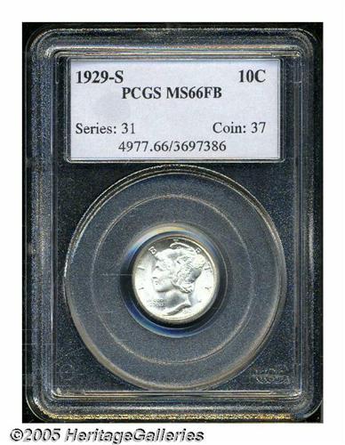 <B>1929-S<10C> MS66 Full Bands PCGS.</B></I> Dazzling, brilliant surfaces and seemingly unimprovable overall. An impressive example of this slightly better issue. Population: 89 in 66 Full Bands, 20 finer (6/05).