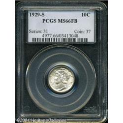 1929-S 10C MS66 Full Bands PCGS. Speckles of olive <B>1929-S 10C MS66 Full Bands PCGS.</B></I> Speckles of olive and lavender visit lustrous surfaces that are lovingly preserved. The design features are well impressed throughout. Population: 80 in 66, 18 finer (10/04). <BR><BR><B>Important notice:</B> Heritage usually auctions material at the rate of 200-250 lots per hour. On some occasions eBay Live bid software or the Internet may not be able to keep up with the pace of the auction. We recommend placing a realistic absentee bid now as insurance to avoid disappointment. Occasionally the auctioneer may eliminate or reject an eBay Live bid, and the auctioneer may also reopen a lot after the close of the eBay live bidding (usually because we missed an audience bid), and may reject your bid even if it shows you as the winning bidder. By bidding via eBay Live, you agree that Heritage may award the lot to another bidder at its sole discretion under the circumstances described above or any other reasonable circumstances. Since eBay bids are not shown to us until we open the lot on the floor, we treat those bids just like floor bids. In most cases the floor responds before the eBay bid is presented to us, due to Internet lag time, so for consistency we have made it a policy that floor bids are always considered first over tie eBay live bids. Also please note that all Heritage lots purchased through eBay Live carry a 20% Buyer's Premium. Please make sure you read the Terms and Conditions before you bid. This lot is being auctioned in conjunction with a live floor auction by Heritage Galleries & Auctioneers. All final auction and invoice information will be supplied by Heritage Galleries & Auctioneers, and all other information should be considered preliminary. Lot:5817