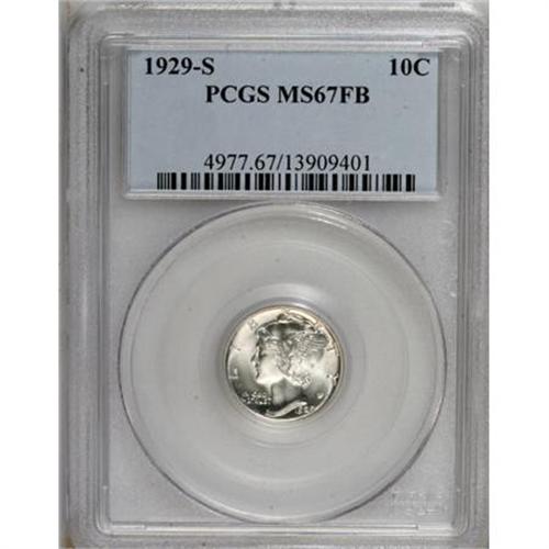 <B>1929-S 10C MS67 Full Bands PCGS.</B></I> This penetratingly struck and fully brilliant example has vibrant luster and a pristine obverse. Faint clash marks from the leaves are present before Liberty's profile. Neither major grading service has encapsulated any finer. Population: 25 in 67 Full Bands, 0 finer (8/07).<BR><BR><B>Coin Engraver:</B> Adolph A. Weinman<BR><BR><b>Shipping:</b> Coins & Currency (<a target="_blank" href="http://www.heritageauctions.com/common/shipping.php">view shipping information</a>)