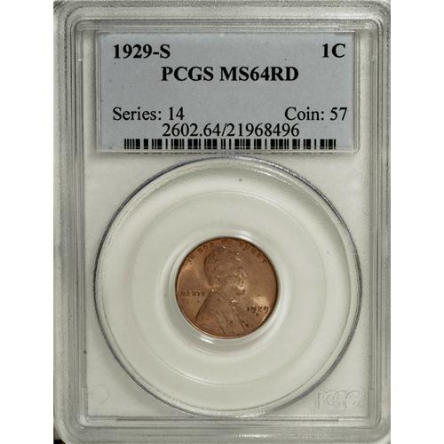 <B>1929-S 1C MS64 Red PCGS.</B></I> PCGS Population (392/221). NGC Census: (300/316). Mintage: 50,148,000. Numismedia Wsl. Price for NGC/PCGS coin in MS64: $55. (#2602)<BR><BR><b>Shipping:</b> Coins & Currency (<a target="_blank" href="http://www.heritageauctions.com/common/shipping.php">view shipping information</a>)