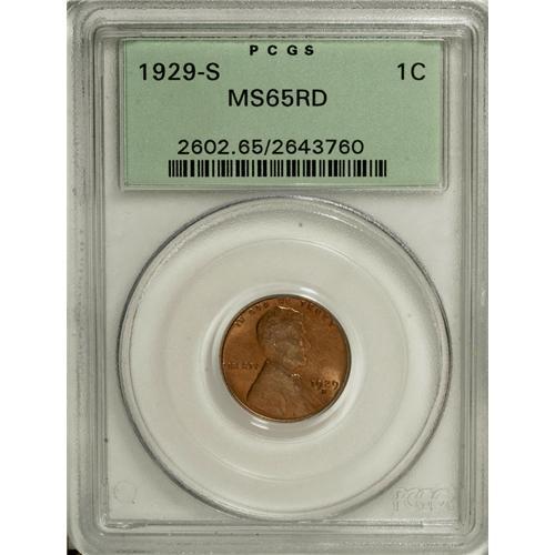 <B>1929-S 1C MS65 Red PCGS.</B></I> PCGS Population (201/20). NGC Census: (270/46). Mintage: 50,148,000. Numismedia Wsl. Price for NGC/PCGS coin in MS65: $380. (#2602)<BR><BR><b>Shipping:</b> Coins & Currency (<a target="_blank" href="http://www.heritageauctions.com/common/shipping.php">view shipping information</a>)
