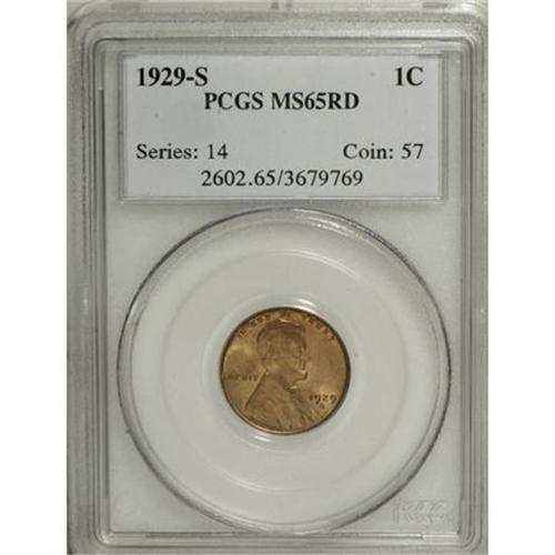 <B>1929-S 1C MS65 Red PCGS.</B></I> PCGS Population (201/20). NGC Census: (135/23). Mintage: 50,148,000. Numismedia Wsl. Price for NGC/PCGS coin in MS65: $380. (#2602)<BR><BR><B>Coin Engraver:</B> Victor D. Brenner<BR><BR><b>Shipping:</b> Coins & Currency (<a target="_blank" href="http://www.heritageauctions.com/common/shipping.php">view shipping information</a>\)