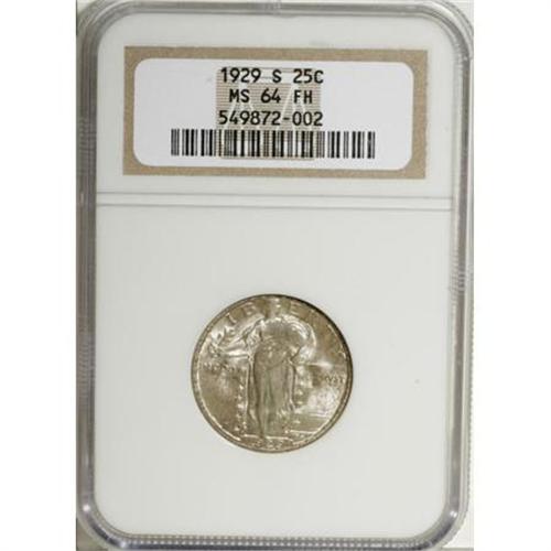 <B>1929-S 25C MS64 Full Head NGC.</B></I> NGC Census: (152/217). PCGS Population (175/270). Mintage: 1,764,000. Numismedia Wsl. Price for NGC/PCGS coin in MS64: $416. (#5777)<BR><BR><B>Coin Engraver:</B> Hermon A. MacNeil<BR><BR><b>Shipping:</b> Coins & Currency (<a target="_blank" href="http://www.heritageauctions.com/common/shipping.php">view shipping information</a>)