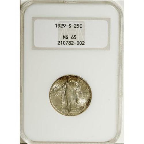 <B>1929-S 25C MS65 NGC.</B></I> NGC Census: (168/123). PCGS Population (216/95). Mintage: 1,764,000. Numismedia Wsl. Price for NGC/PCGS coin in MS65: $440. (#5776)<BR><BR><B>Coin Engraver:</B> Hermon A. MacNeil<BR><BR><b>Shipping:</b> Coins & Currency (<a target="_blank" href="http://www.heritageauctions.com/common/shipping.php">view shipping information</a>)