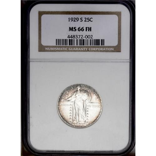 <B>1929-S<25C> MS66 Full Head NGC.</B></I> Well struck (only three shield rivets and the eagle's breast feathers are incomplete) with bright, hard satiny luster and unbelievably deep charcoal-brown and dark-green peripheral toning on both sides. The exquisitely preserved surfaces are virtually pristine. A relatively scarce, lower mintage date, for the series. Census: 72 in 66, 19 finer (4/06).
