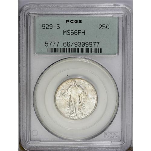 <B>1929-S<25C> MS66 Full Head PCGS.</B></I> A shimmering, wonderfully preserved example with slight mottled toning that gravitates to the borders. Fully struck except for three of the shield rivets. A no-questions Premium Gem. <BR><I>From The David L. Goodwin Collection.</B></I>