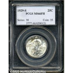 1929-S 25C MS66 Full Head PCGS. Essentially untoned with subtle splashes of golden patina. A highly lustrous Gem worthy of consideration for a fine type collection. Important notice: Heritage usually auctions material at the rate of 200-250 lots per hour. On some occasions eBay Live bid software or the Internet may not be able to keep up with the pace of the auction. We recommend placing a realistic absentee bid now as insurance to avoid disappointment. Occasionally the auctioneer may eliminate or reject an eBay Live bid, and the auctioneer may also reopen a lot after the close of the eBay live bidding (usually because we missed an audience bid), and may reject your bid even if it shows you as the winning bidder. By bidding via eBay Live, you agree that Heritage may award the lot to another bidder at its sole discretion under the circumstances described above or any other reasonable circumstances. Also please note that all Heritage lots purchased through eBay Live carry a 20% Buyer's Premium. Please make sure you read the Terms and Conditions before you bid.