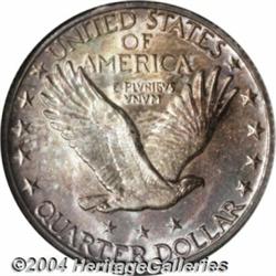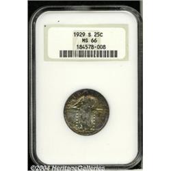 <B>1929-S<25C> MS66 NGC.</B></I> A glittering example of one of the most popular type coins ever made. Coinage of the '20s and '30s is looked upon by many today as the glory years of U.S. coin design. At any rate, this particular coin exhibits lovely deep gold, crimson, green, and blue iridescence overall. We cannot imagine a cleaner, more pleasing example for the date. Although the head is not full, it is well struck with little evidence of "mushiness" present. For the finest collection.<BR><I>From the JFS Collection.</B></I> <BR><BR><B>Important notice:</B> Heritage usually auctions material at the rate of 200-250 lots per hour. On some occasions eBay Live bid software or the Internet may not be able to keep up with the pace of the auction. We recommend placing a realistic absentee bid now as insurance to avoid disappointment. Occasionally the auctioneer may eliminate or reject an eBay Live bid, and the auctioneer may also reopen a lot after the close of the eBay live bidding (usually because we missed an audience bid), and may reject your bid even if it shows you as the winning bidder. By bidding via eBay Live, you agree that Heritage may award the lot to another bidder at its sole discretion under the circumstances described above or any other reasonable circumstances. Since eBay bids are not shown to us until we open the lot on the floor, we treat those bids just like floor bids. In most cases the floor responds before the eBay bid is presented to us, due to Internet lag time, so for consistency we have made it a policy that floor bids are always considered first over tie eBay live bids. Also please note that all Heritage lots purchased through eBay Live carry a 20% Buyer's Premium. Please make sure you read the Terms and Conditions before you bid. </span></font></tr></table></td></tr></table>