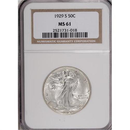 <B>1929-S 50C MS61 NGC.</B></I> NGC Census: (12/436). PCGS Population (6/613). Mintage: 1,902,000. Numismedia Wsl. Price for NGC/PCGS coin in MS61: $425. (#6590)<BR><BR><B>Coin Engraver:</B> Adolph A. Weinman<BR><BR><b>Shipping:</b> Coins & Currency (<a target="_blank" href="http://www.heritageauctions.com/common/shipping.php">view shipping information</a>)