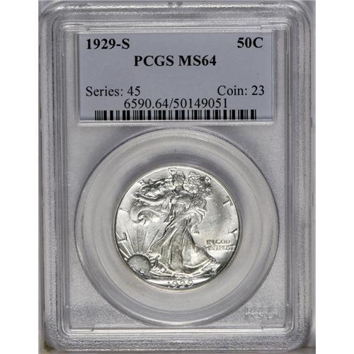 1929-S 50C MS64 PCGS. The soft, satiny surfaces are la