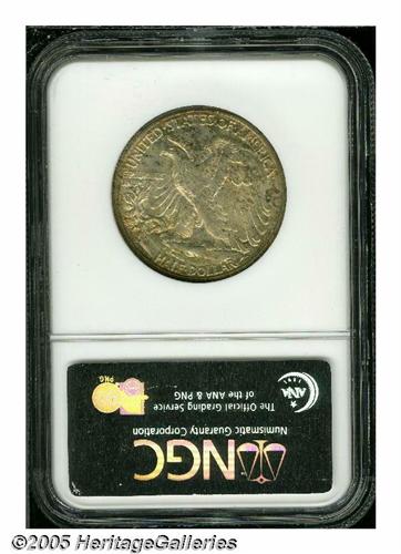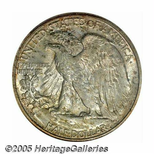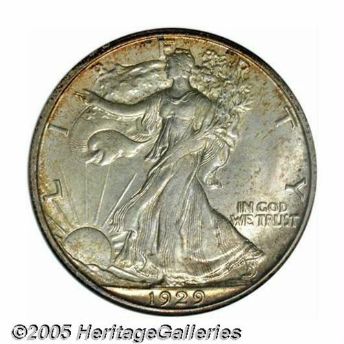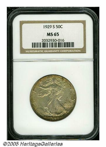 <B>1929-S<50C> MS65 NGC.</B></I> This lustrous Walker has it all, including eye appeal, good color, and an unusually sharp strike for the date, with admirable head and hand details on the obverse. The highly lustrous surfaces are lightly covered with moderate antique-gold patina that is distributed in a somewhat mottled fashion on both sides. An unquestionable Gem that should see serious bidding activity from Walking Liberty Half Dollar enthusiasts.<BR><I>From The Clifford Columbus Collection.</B></I>